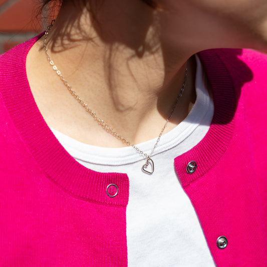 Melanie DeCourcey Heart shaped silver chain with freestyle pendant