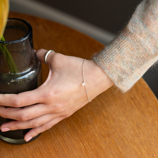 Melanie DeCourcey DNA different shape hematite and rose quartz blacelet