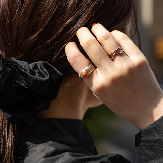 Melanie Decourcey Textured silver ring with round coral