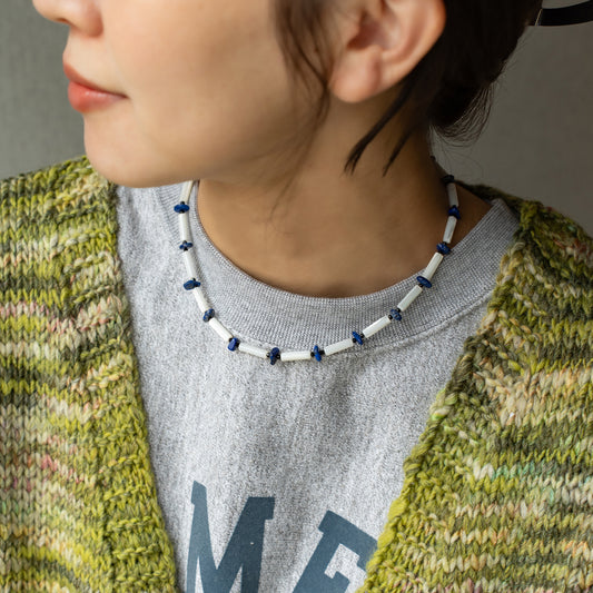 Melanie DeCourcey White mother of pearl with black tourmaline and lapis lazuli necklace