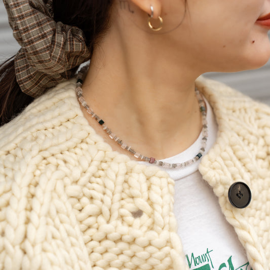 Melanie DeCourcey Labradorite , moon stone, rose quartz cube and agate cubes necklace