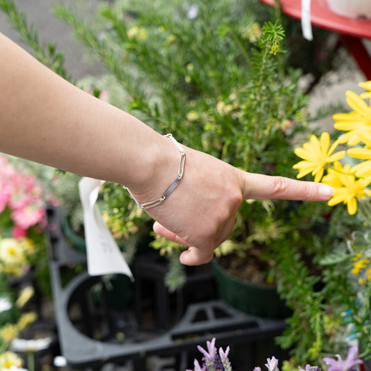 Melanie Decourcey Black and white mother of pearl with oval silver parts alternating