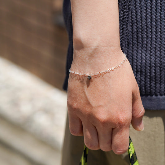 Melanie DeCourcey Heart shape silver chain with small floating black mother of pearl heart