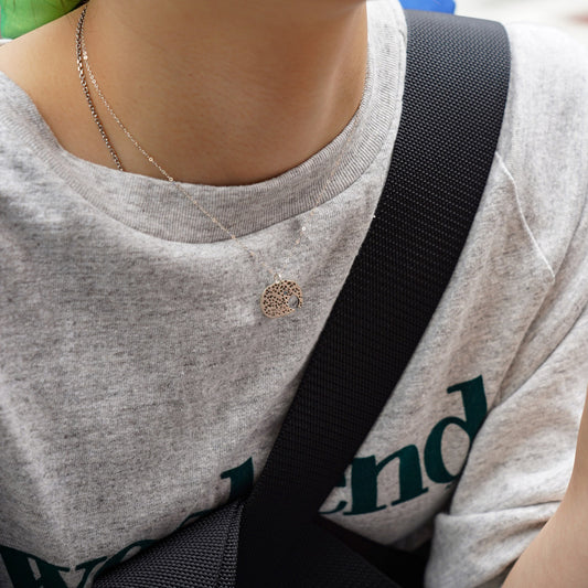 Melanie DeCourcey Heart shaped silver chain with freestyle pendant