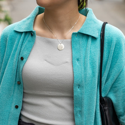 Melanie DeCourcey Round silver pendant with scribbles