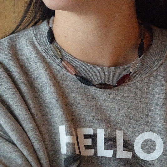 Melanie Decourcey Multicolor Czech glass beads with onyx tubes