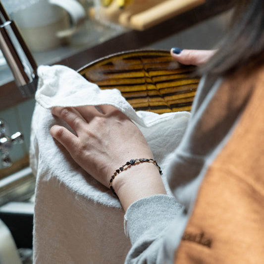 Melanie Decourcey Black mother of pearl heart shaped beads DNA bracelet