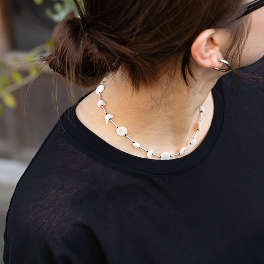 Melanie Decourcey Full moon/half moon mother of pearl alternating with silver tube and onyx