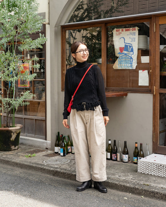 F F F Easy pants -Cotton flannel "Beige × Brown "