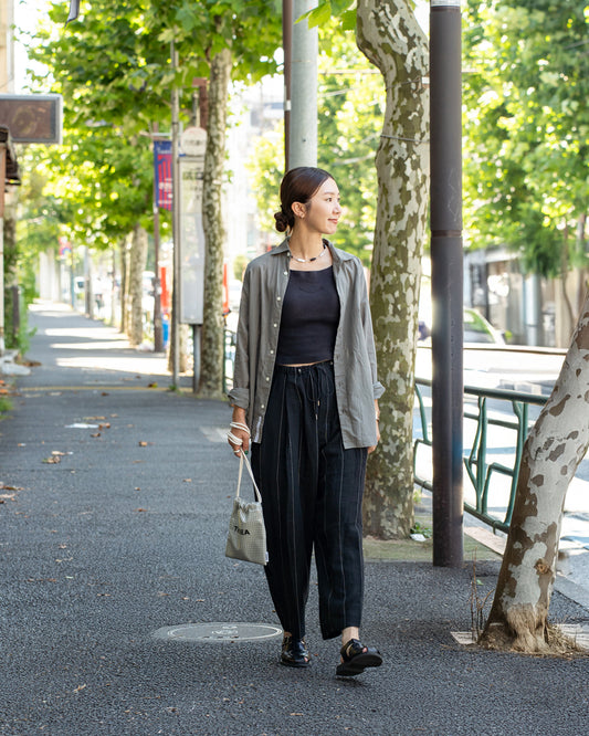 F F F Easy pants -Cotton flannel "Charcoal × Off "