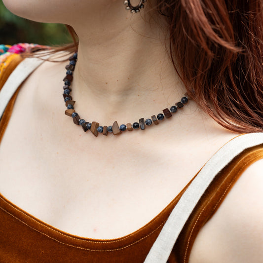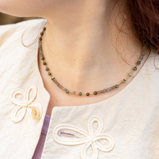 Melanie DeCourcey Beaded necklace -Lapis lazuli, malachite, serpentine, gold fill detail