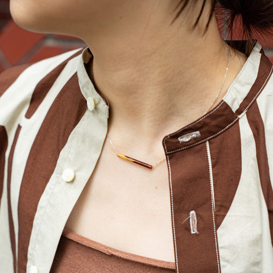 Melanie DeCourcey France antique tortoise tube on silver chain