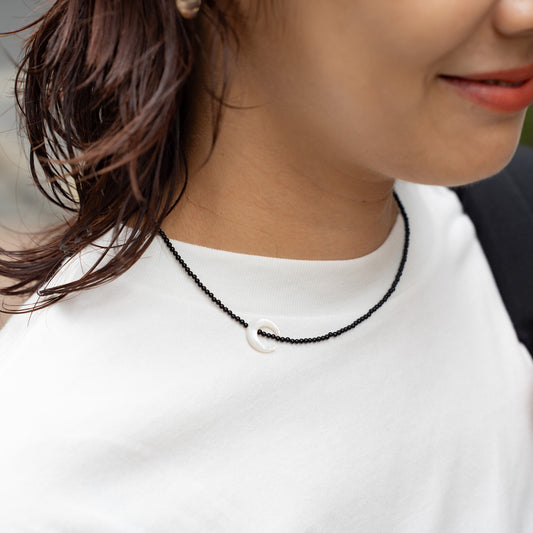 Melanie DeCourcey Black mother of pearl, Czech glass beads, black spinel
