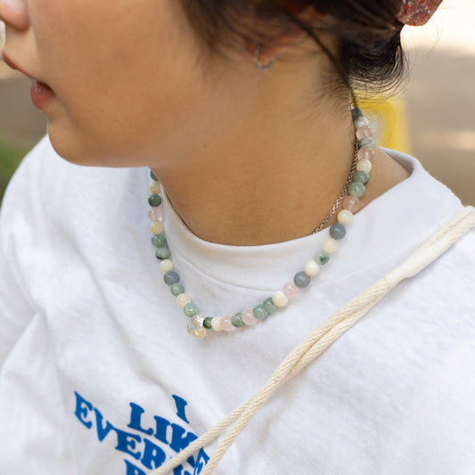 Melanie DeCourcey Mother of pearl, rose quartz, angelite, aventurine, pearl