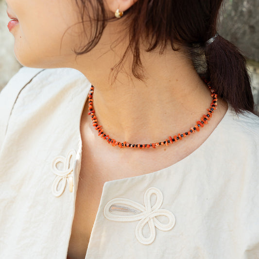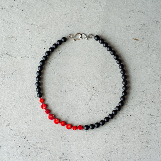Melanie DeCourcey Black spinel cubes alternating with coral beads