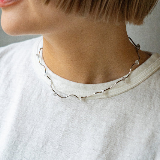 Melanie DeCourcey Silver wave parts with black/white herkimer diamonds