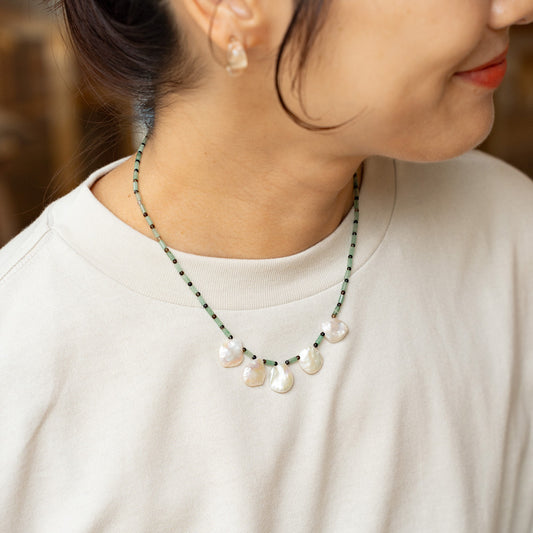 Melanie DeCourcey Aventurine tube with Nepal agate and Keshi pearl