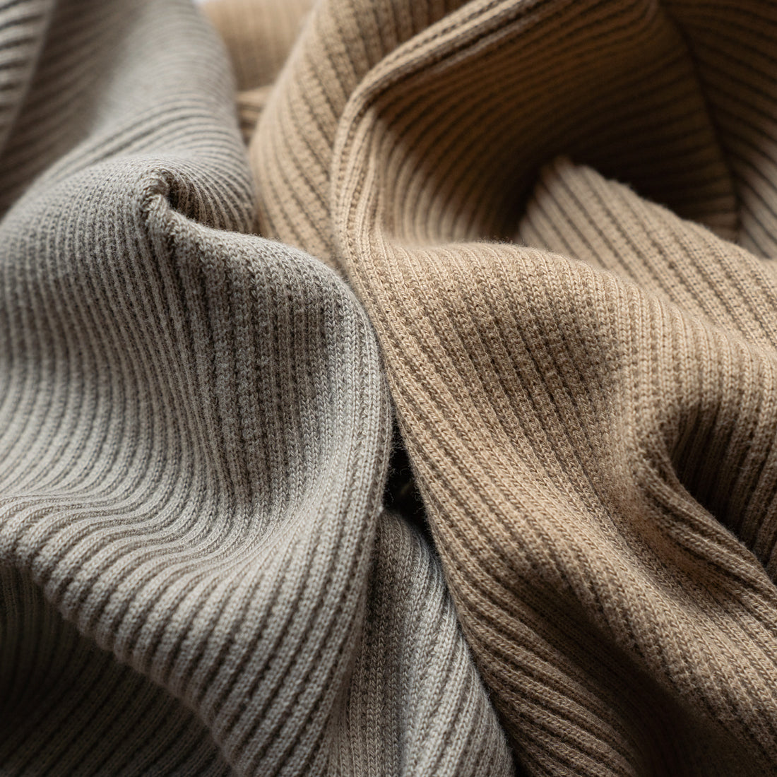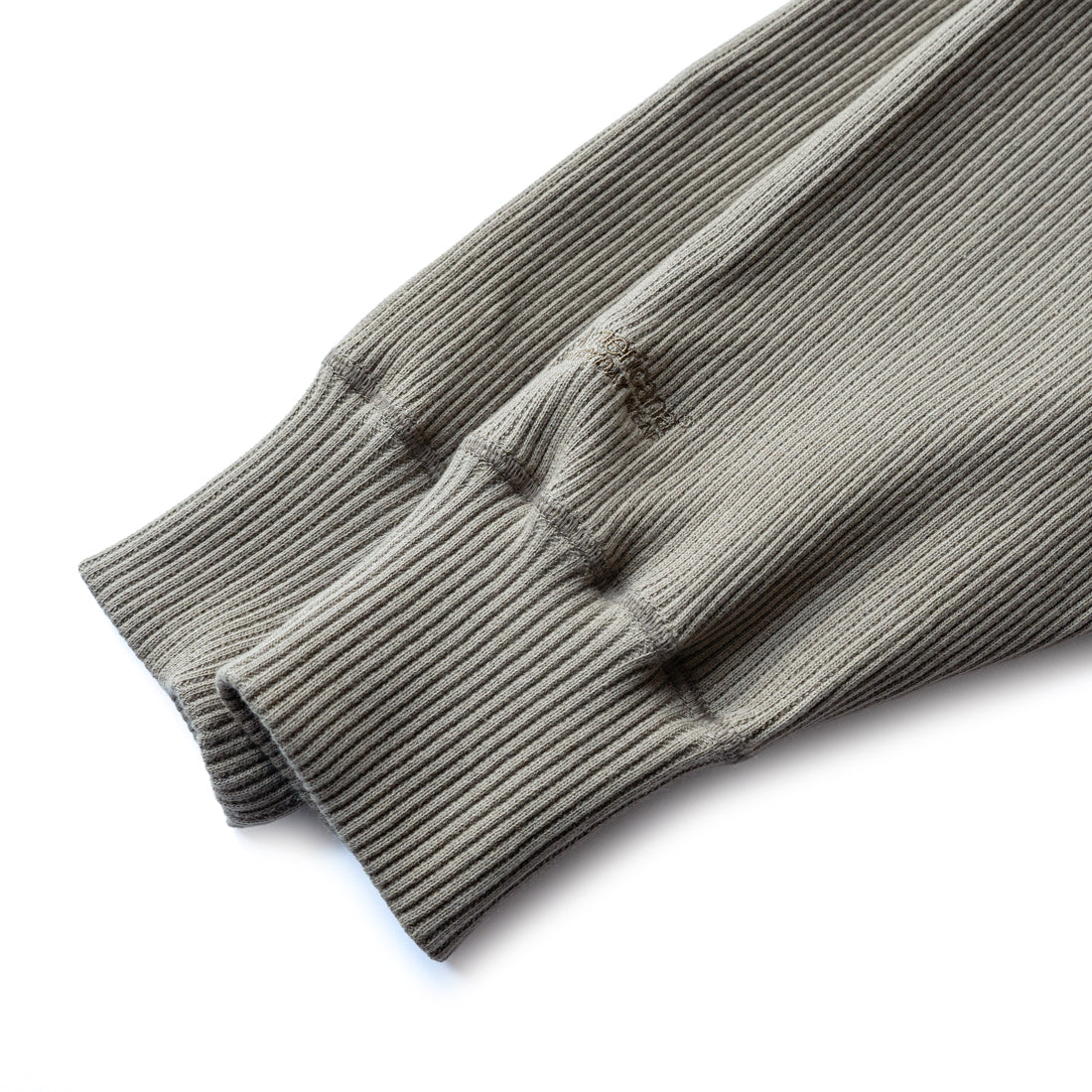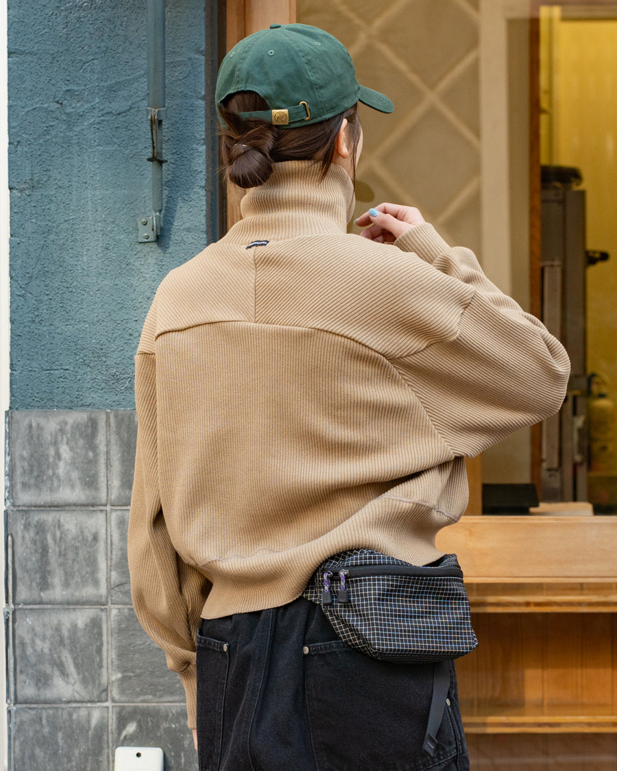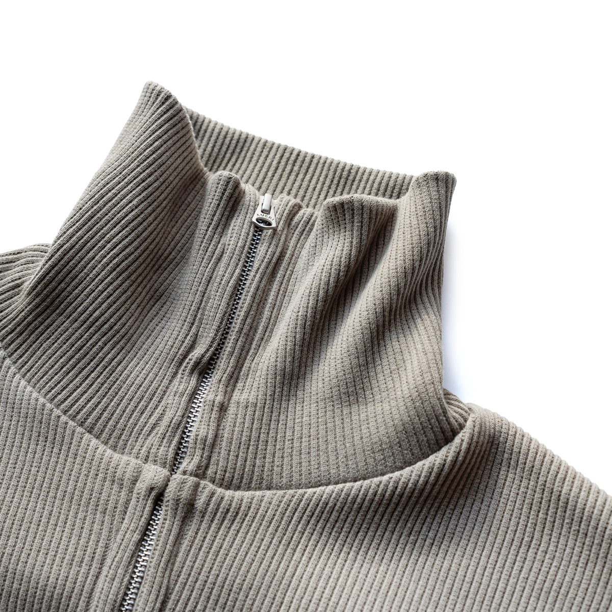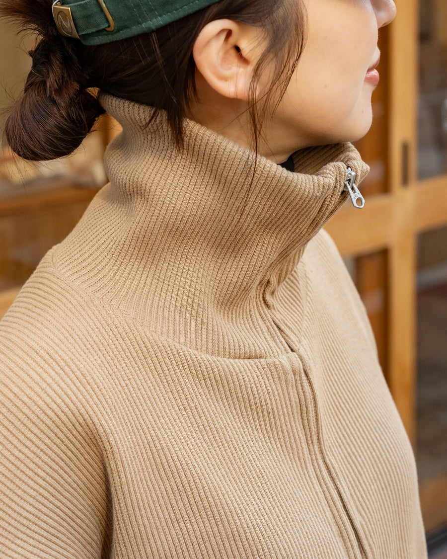 オリジナルの8Gヴィンテージリブを使用しています。厚すぎずロングシーズン着回しやすいちょうどいい生地厚のリブです。フロントはダブルジップ仕様。ジップの開閉でハイネックにしたりオープンカラーにしたり、お好みのネックに変化させることができます。着丈は程よくコンパクト。さまざまなボトムと合わせやすくおすすめのアイテムです。