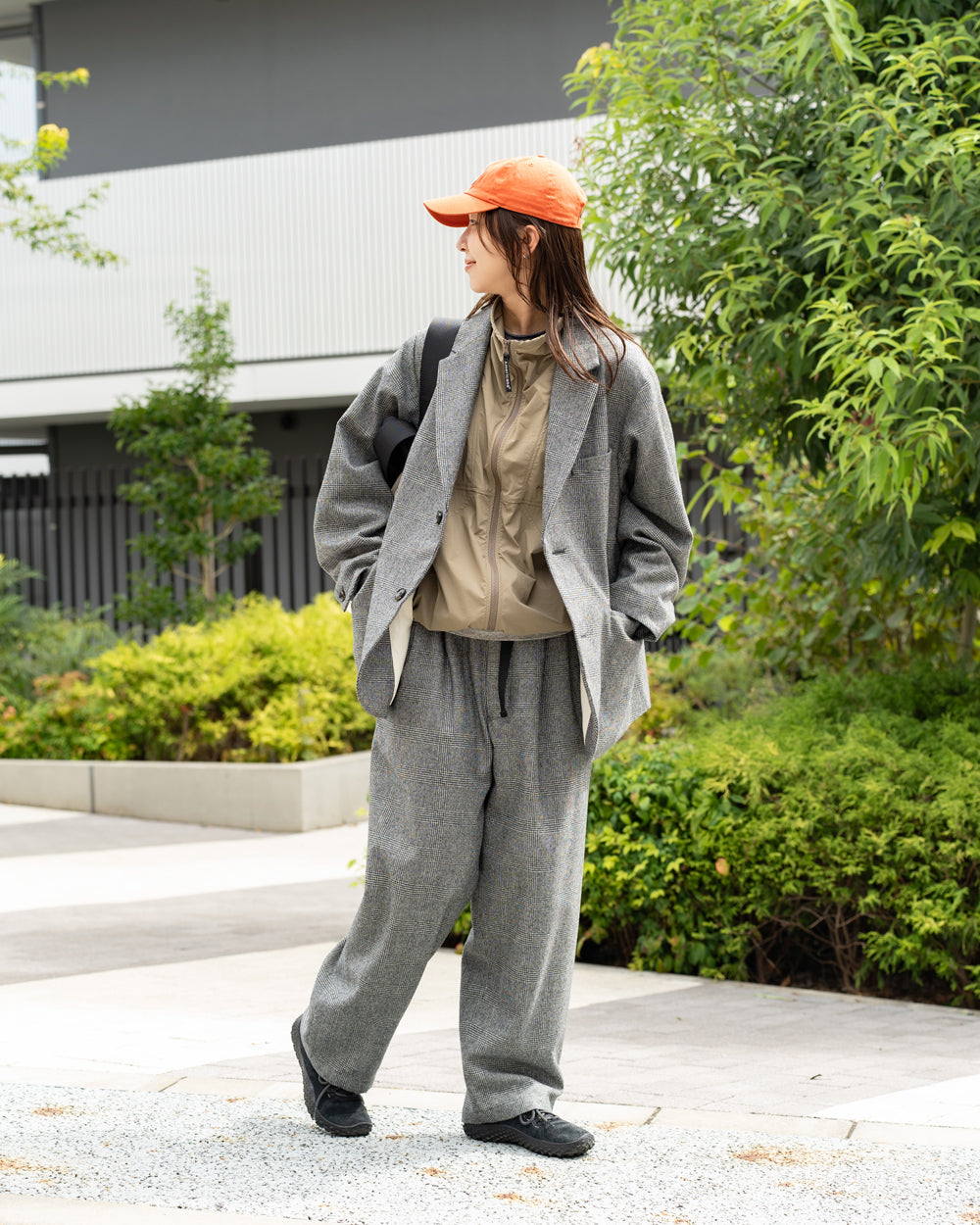 アームホールが広めなのでスウェットなど肉厚なものもレイヤード可能です。