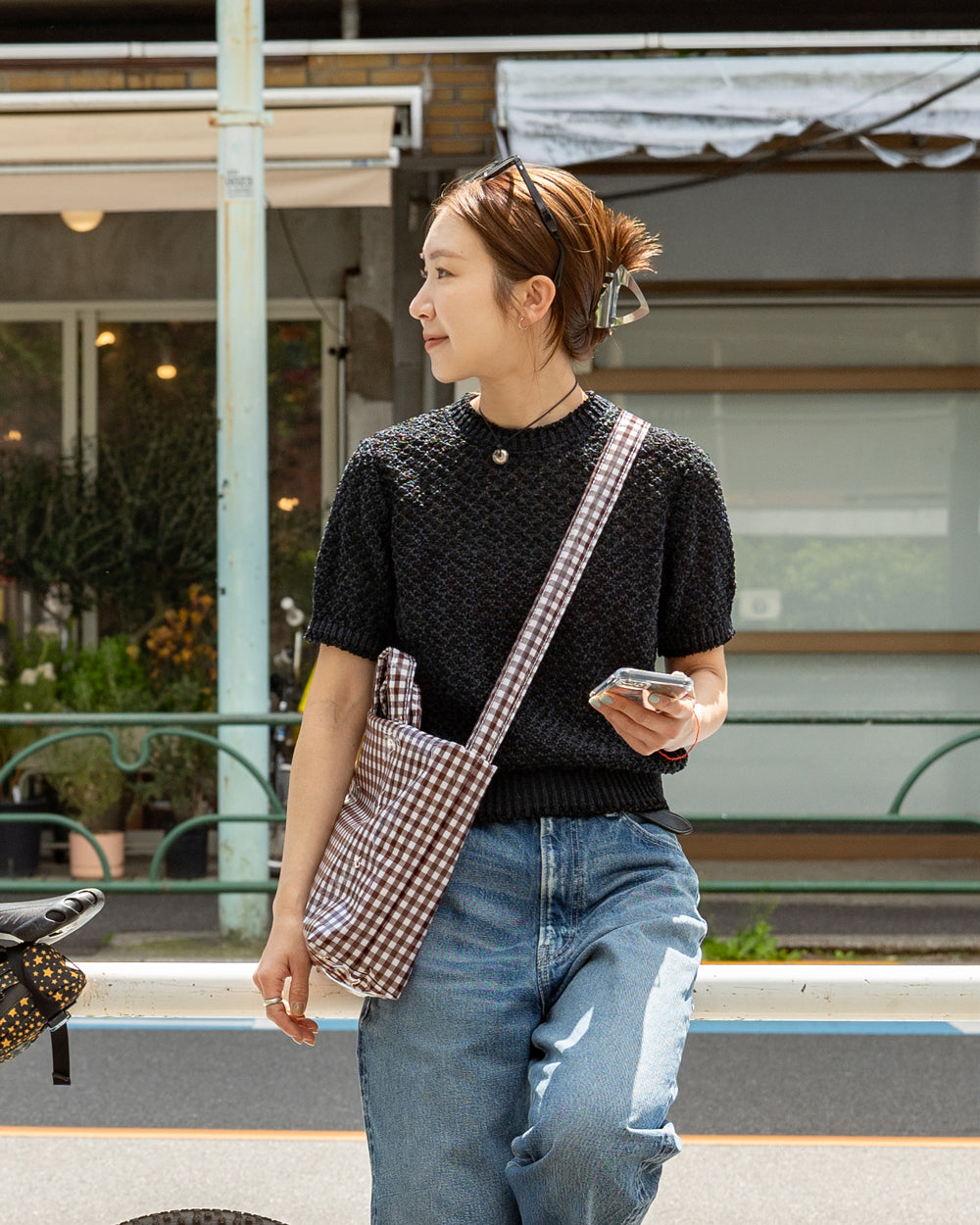Yonetomi NEW BASICはクラシックな編み組織によるベーシックな佇まいでありながらさりげない素材の組み合わせによって新しいベーシックを提案しています。日常の装いとして楽しめる、より身近なアイテムを生み出しています。