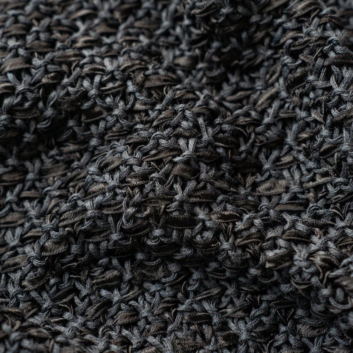 ざっくりとした手編み調のニット。光沢感のあるキュプラのテープを編み込んだ華やかさとカジュアルさのバランスがちょうど良いアイテムです。 素材には清涼感のある疑麻(ギマ)コットンを使用 。ドライなタッチで肌離れがよくこれかの時期にぴったりな着心地。適度にゆとりを持たせたシルエットで着丈はややコンパクトな仕上がりです。