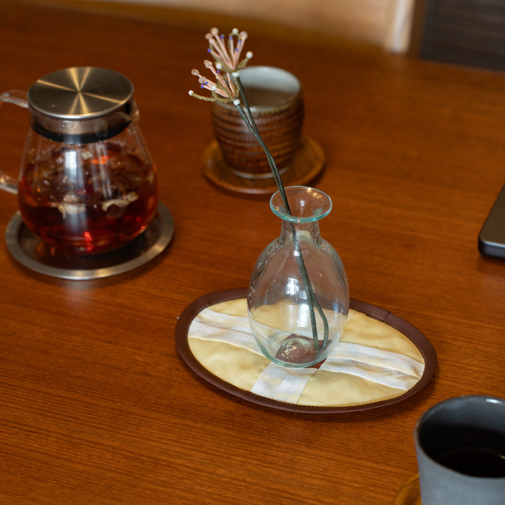 うっすらと中綿が入っているので、花瓶や器などの下に敷くとテーブルや棚が傷つきません。