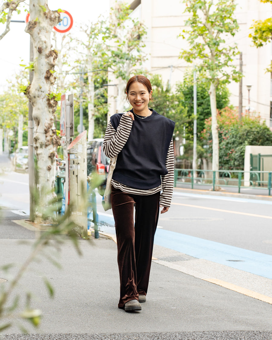 秋はメインで冬はアウターの下に重ねて防寒性UP 。