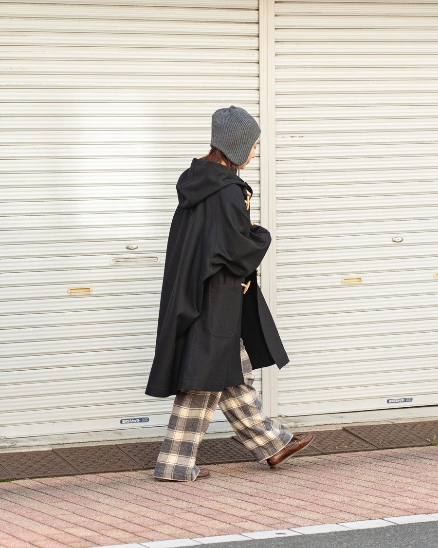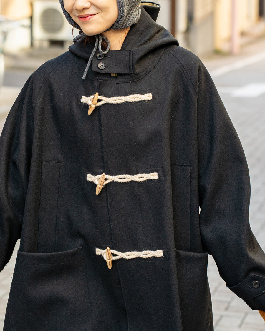 オリジナルの強撚縮絨メルトンを使用した定番ダッフルコートです。