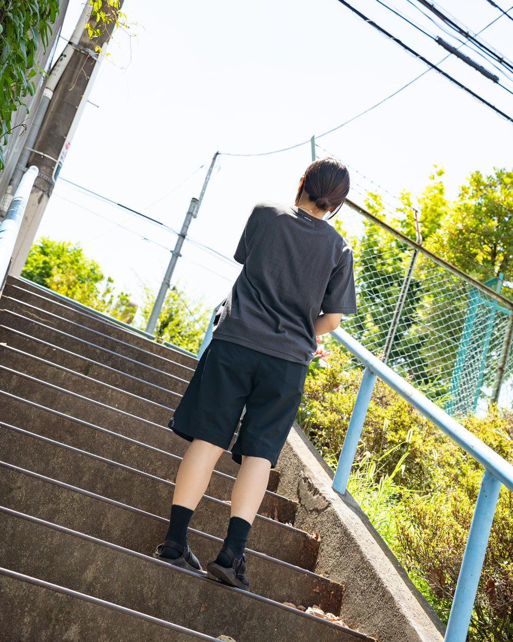 汗をかくこれからの時期には嬉しい機能性と、ストレッチの効いたストレスフリーな着心地が魅力です。とても軽量なので旅先に持って行くのにもおすすめ。