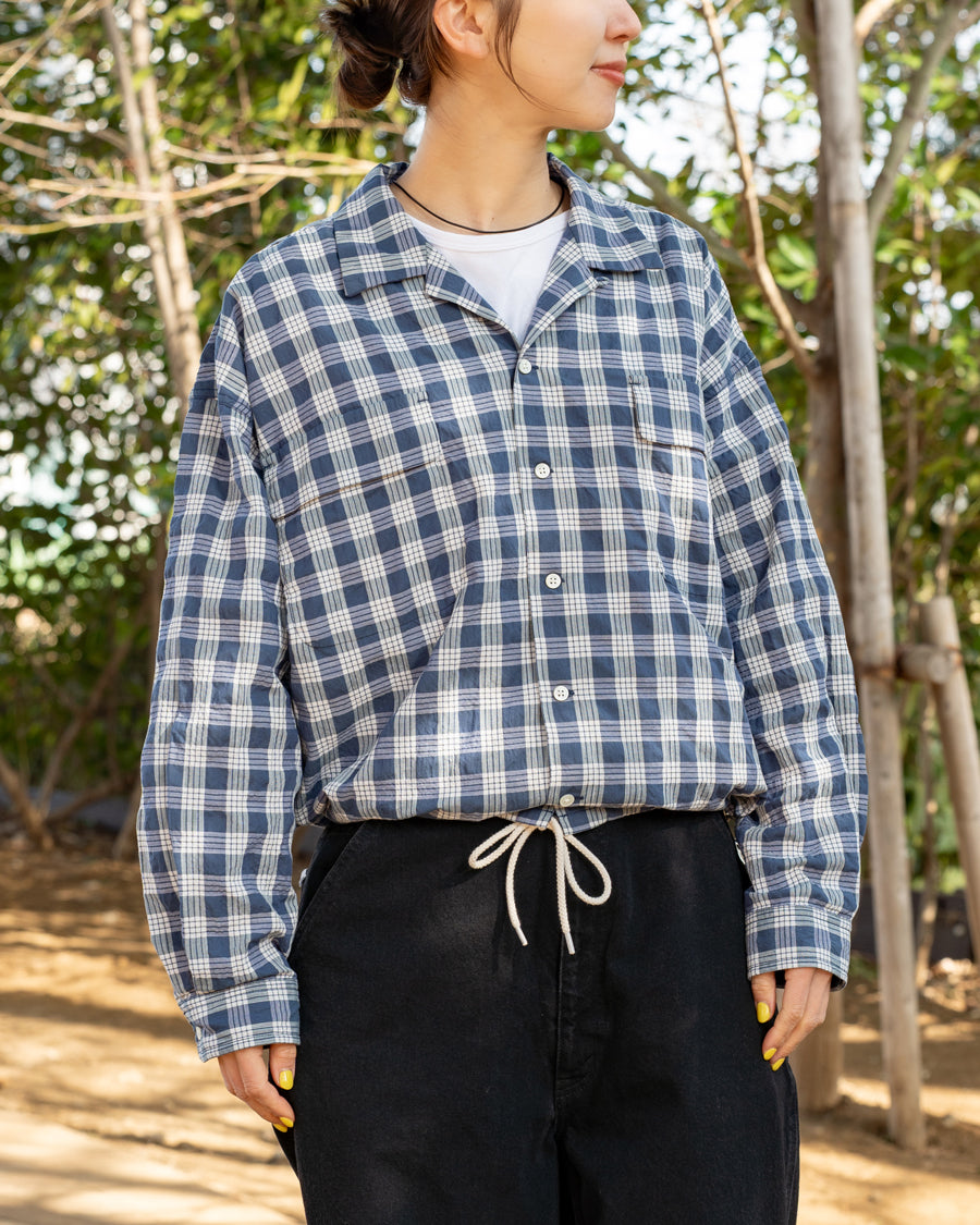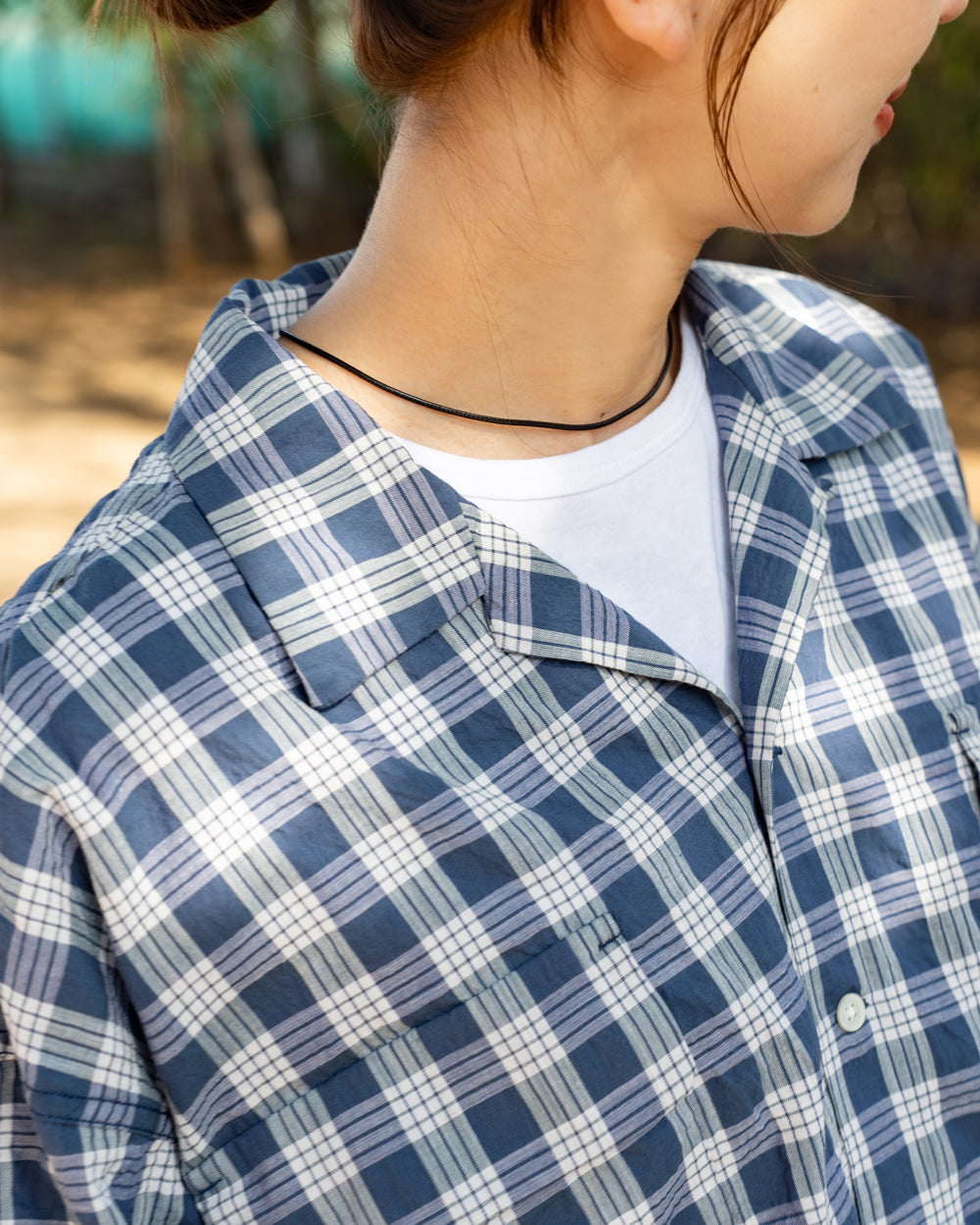 パラカチェックブロードを使用したオープンカラーシャツ。