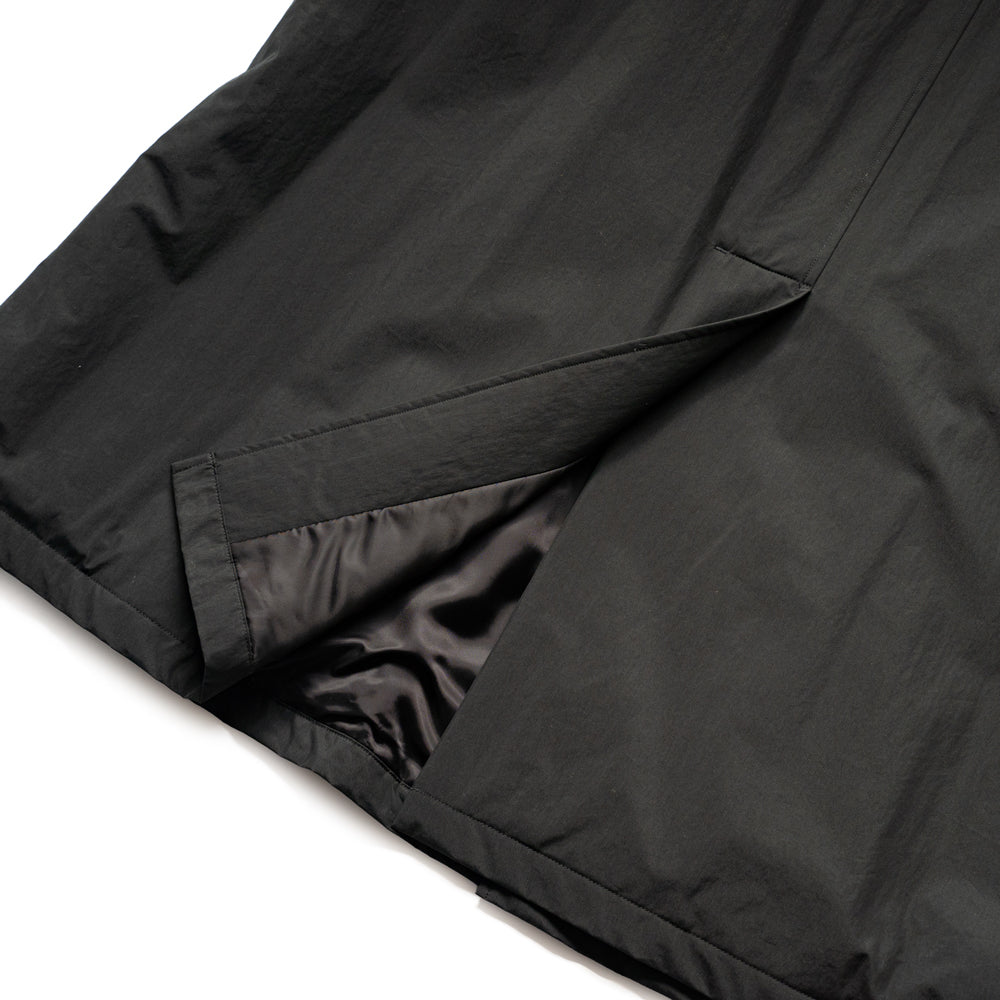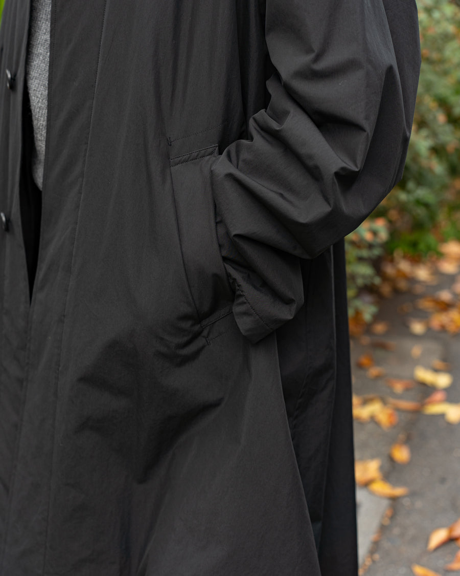 デザインは普遍的なステンカラーで、身幅と袖幅をゆったりとさせて下にバルキーなニットや肉厚なスウェットも余裕で着れるサイズ感に。