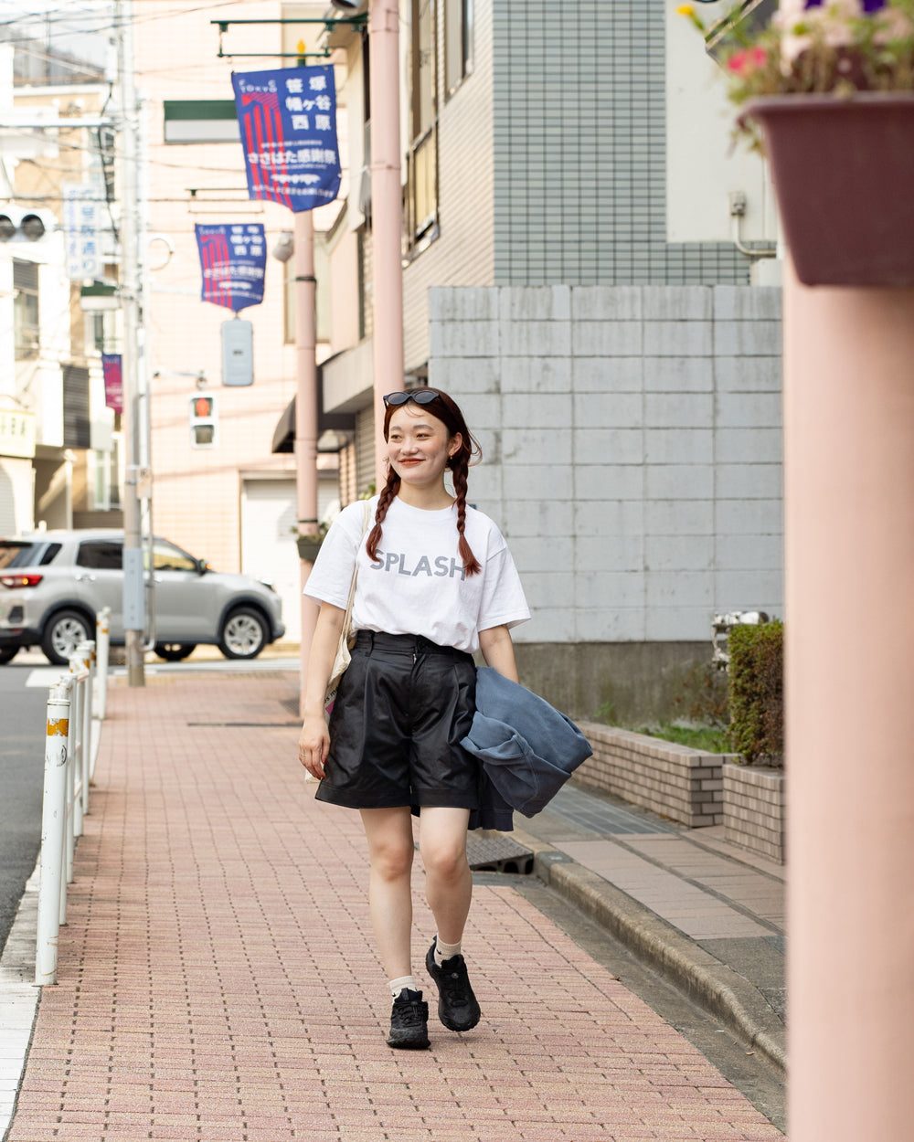 まるでレザーのように見えるショーツ。実はポリエステル素材なんです。