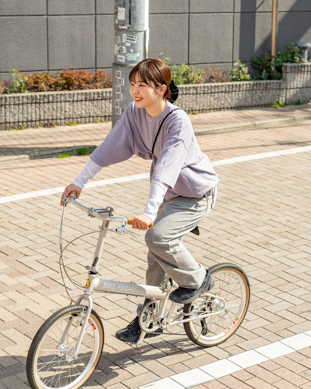 フロントのポケットにはジップが付いているから、座った時や自転車に乗った時、中のものがこぼれないようになっていてとても便利。
