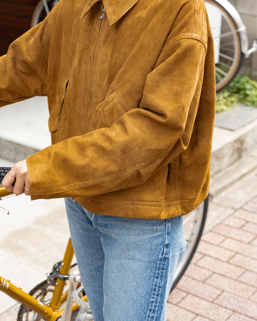 非常に柔らかなシープレザーを使用したブルゾンです。まさにこんなブルゾンが欲しかったというほど理想的の色味のタバコスウェード。