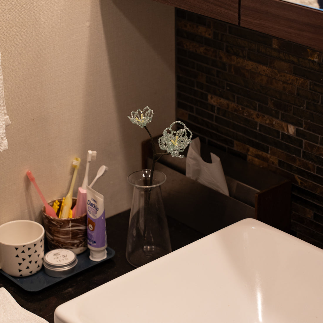 その店主ヨンミさん(@saibotanicalworks_youngmi )がハンドメイドしたビーズフラワーです。