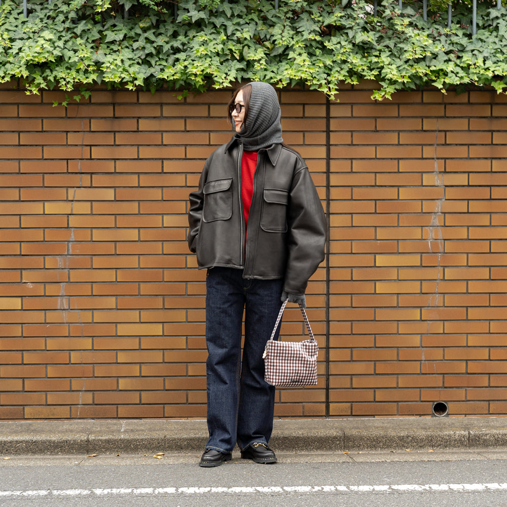 形にこだわったのはもちろんですが、実は内側の生地も表地のチェックの色味と合わせて頂いたり、開口部にマグネットを入れて口が閉じるようになっていたり細かい部分にも拘りが詰まっています。