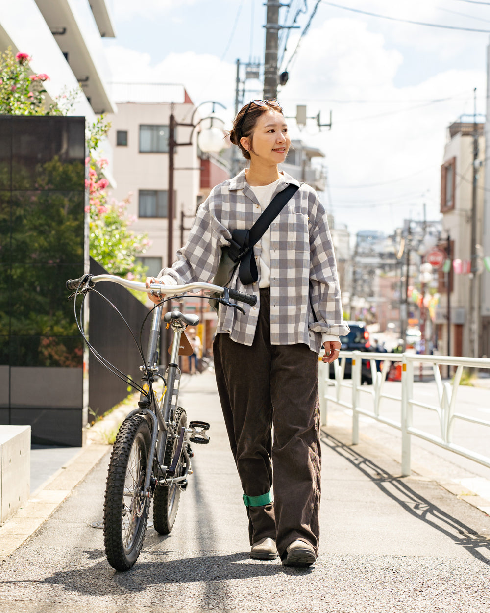 メンズサイズなので全体的にゆったりとしたサイズ感です。ボタンを閉じてメインでも羽織でも使い勝手のいいアイテムです。