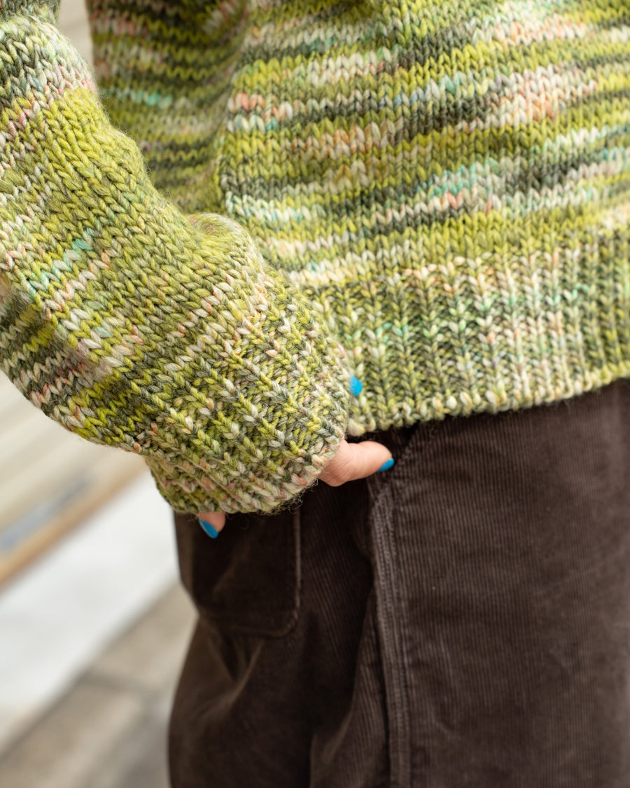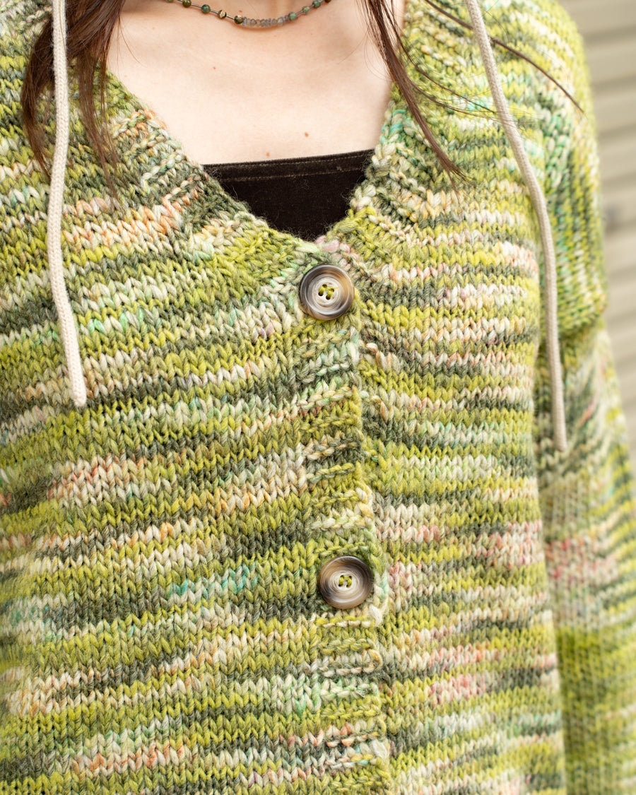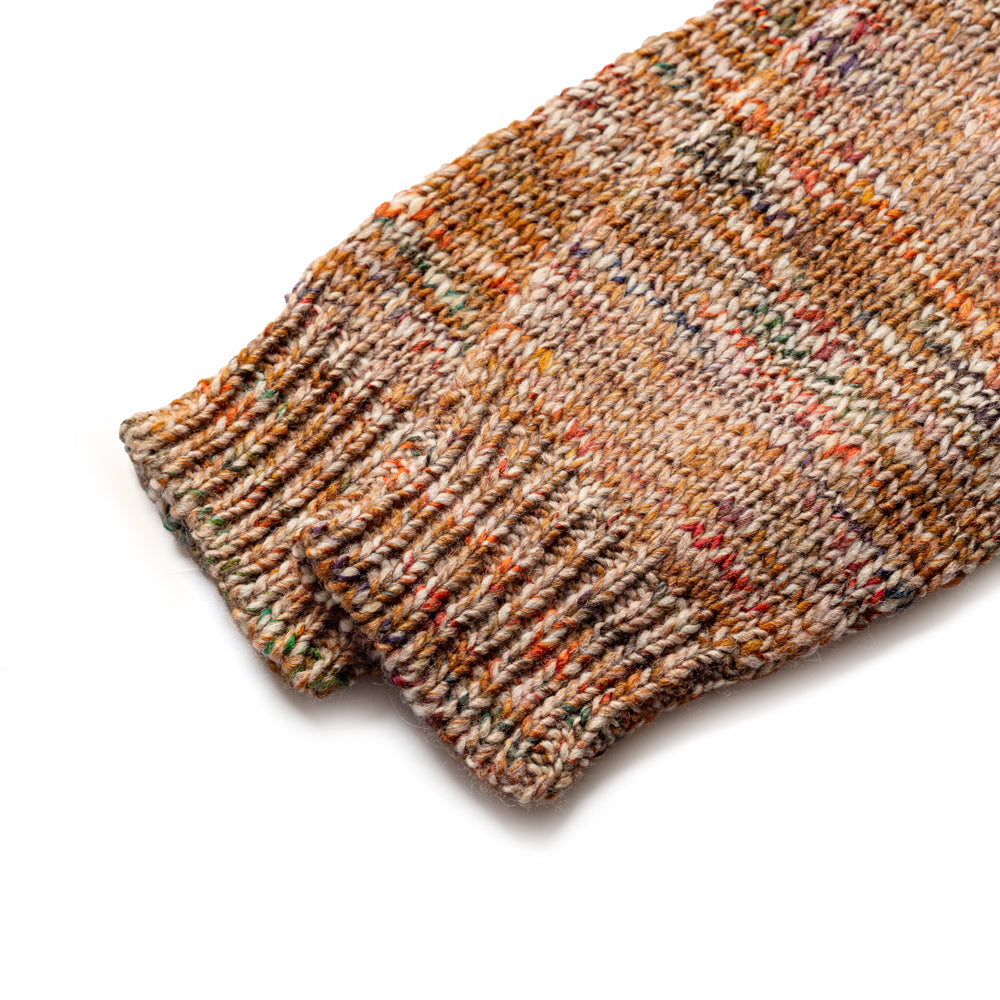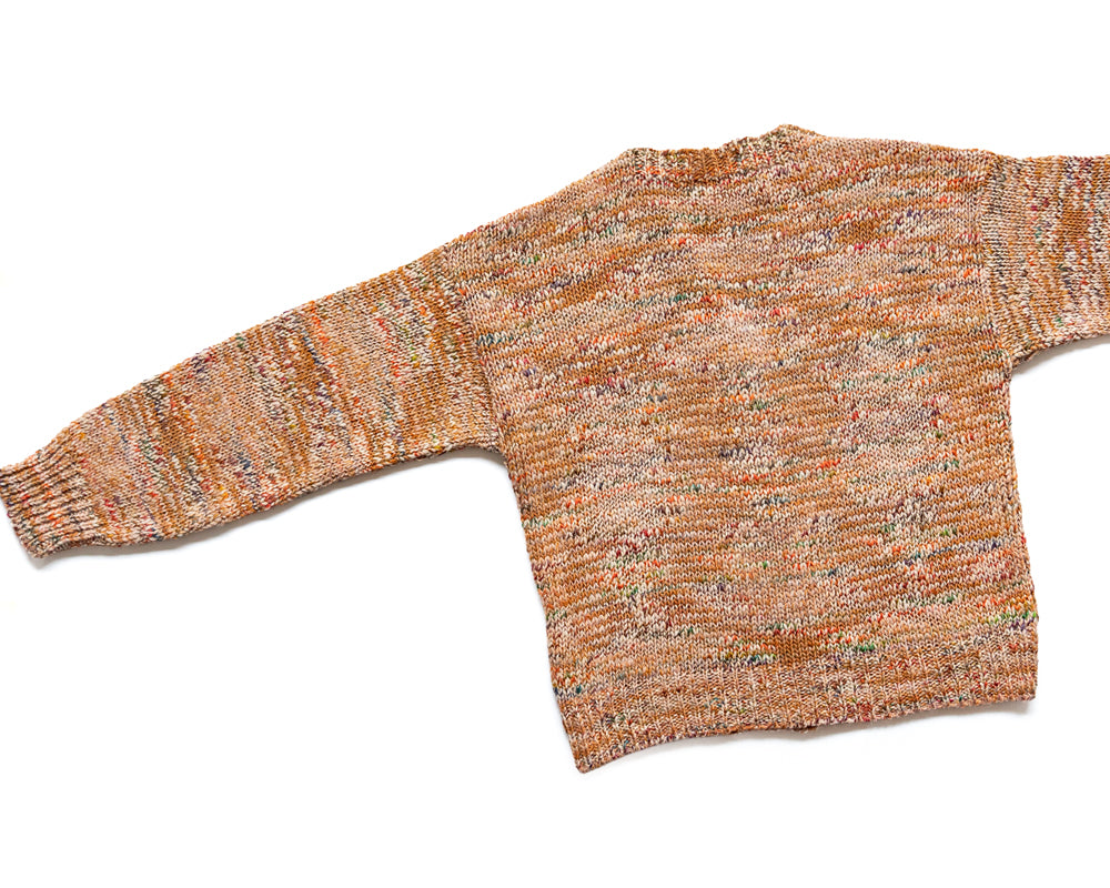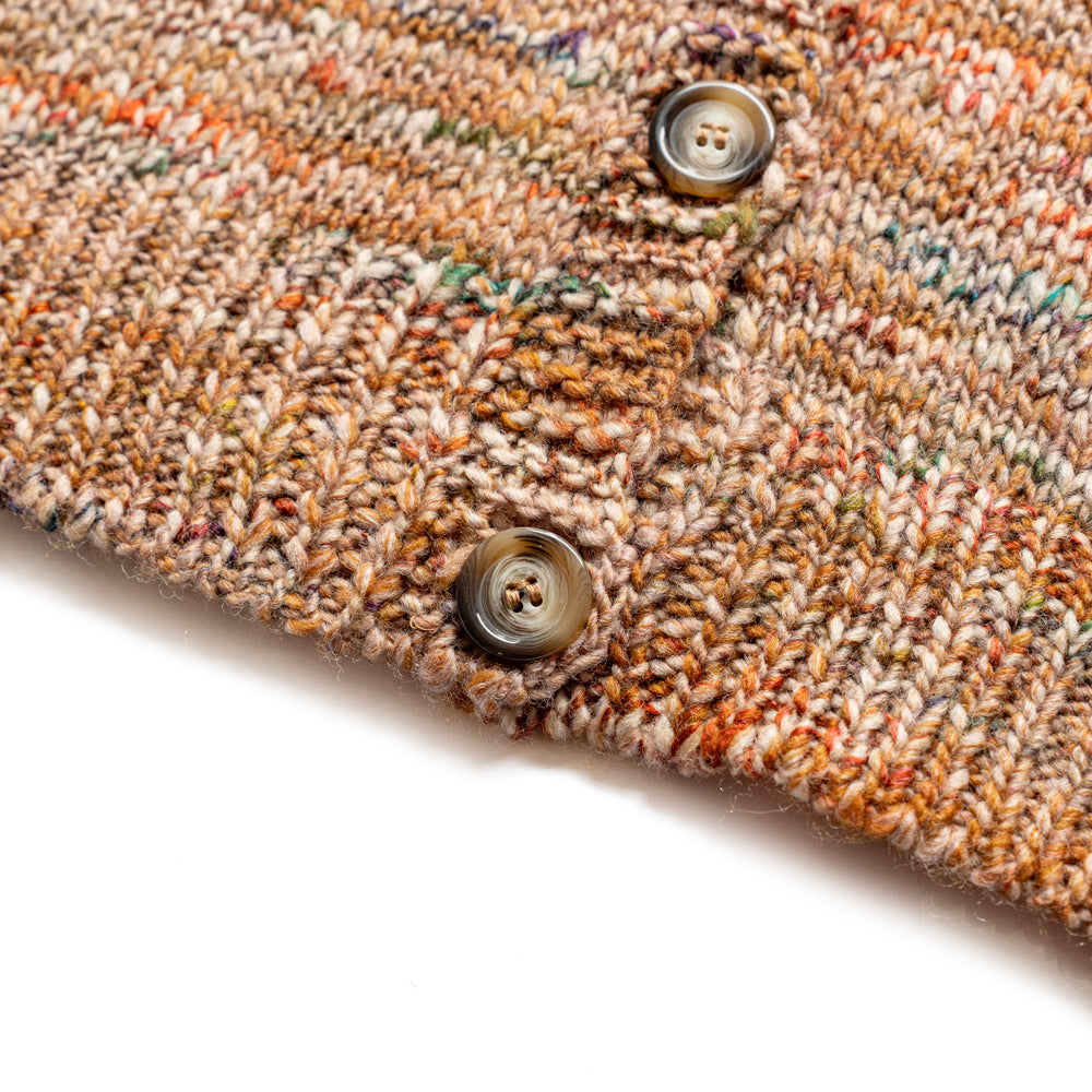 さまざまな色が混ざり合ったざっくり編みのカーディガン。程よくゆとりのあるサイズ感です。見た目よりも軽やかな着心地で羽織りやすいです。リラックス感のあるシルエットでさまざまなボトムと合わせやすいと思います。