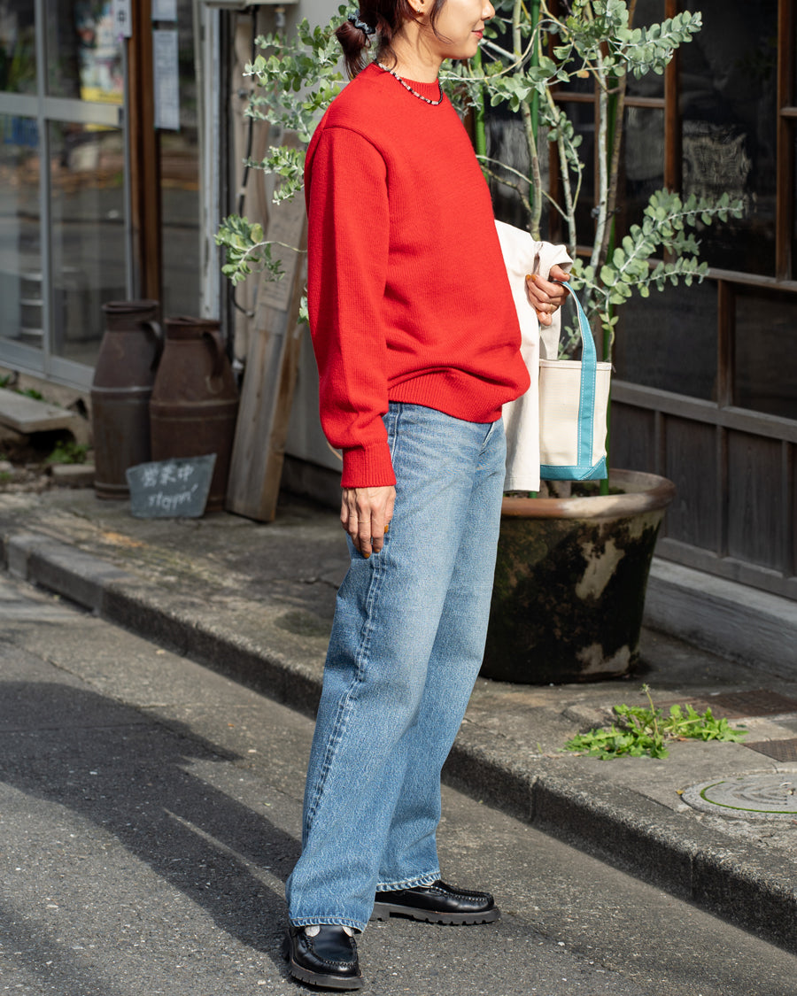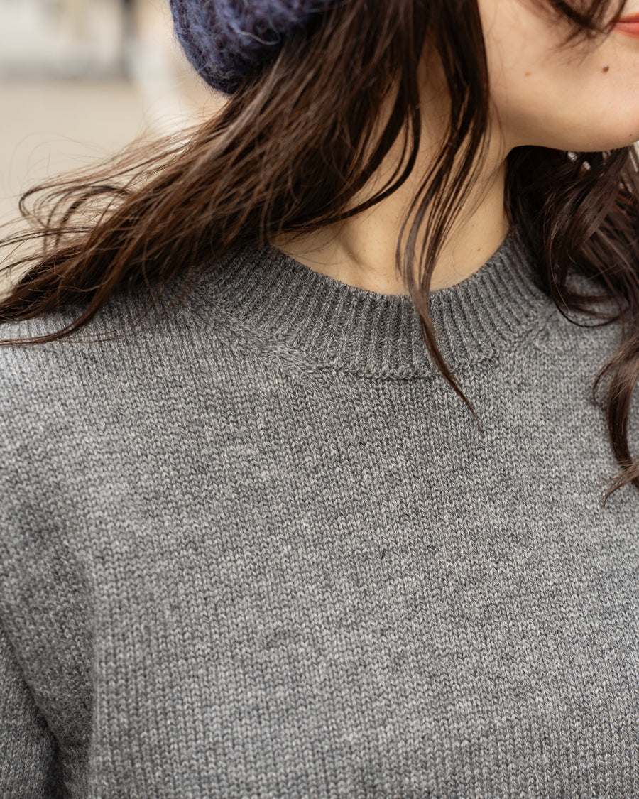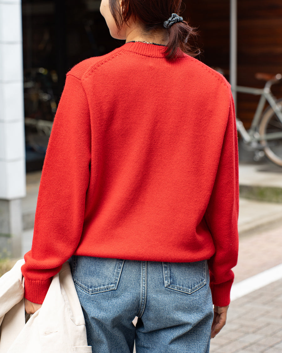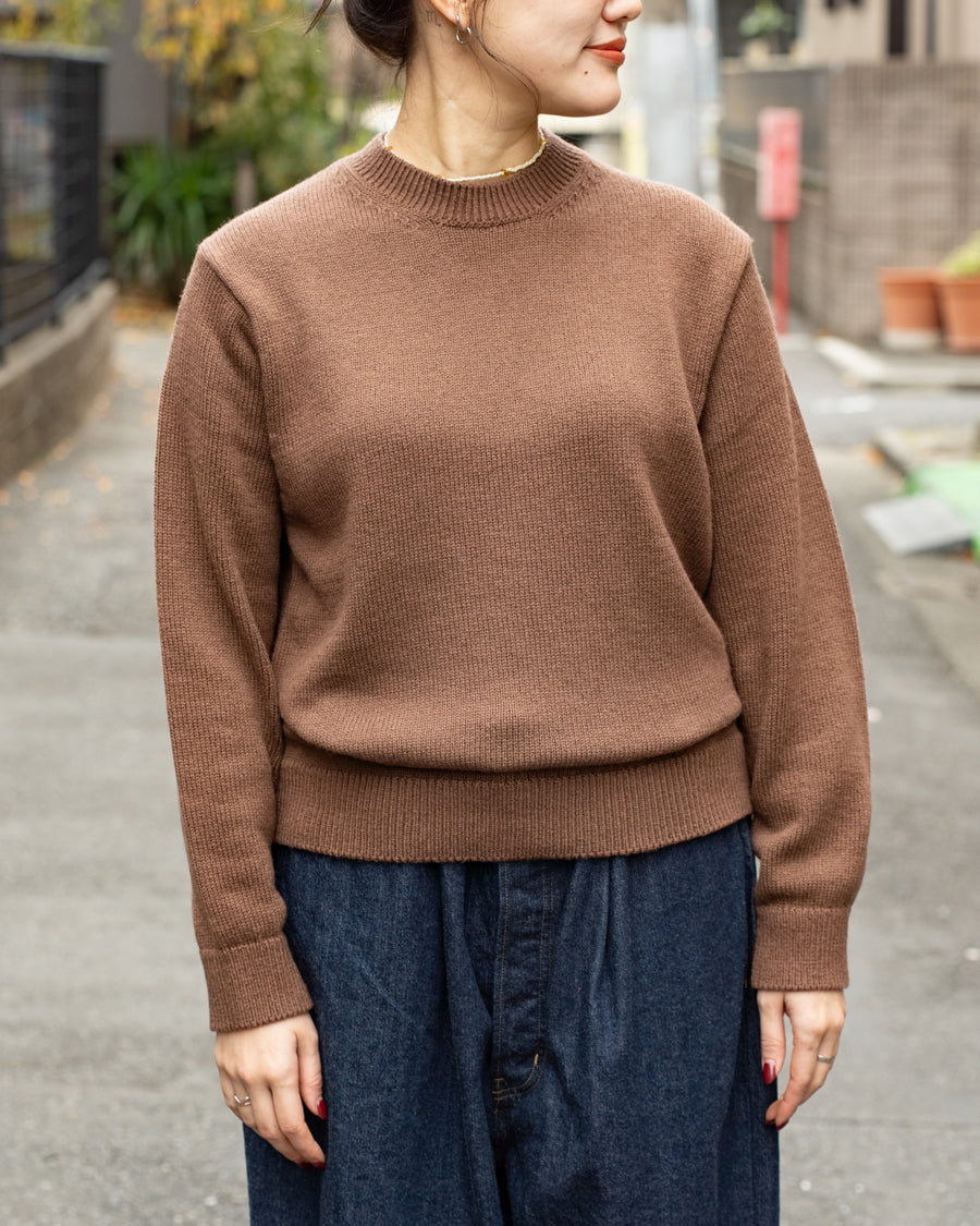オーストラリア産メリノウールを使用した軽く柔らかな着心地が特徴のニットになります。適度にゆとりを持たせたノーマルフィットなシルエット。特殊な紡績の技術により、ご自宅で洗うことができ、かつ紡毛特有の柔らかさ・温かみをキープさせた最新の素材の一着です。