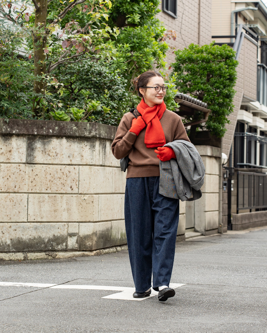 Yonetomi NEW BASICはクラシックな編み組織によるベーシックな佇まいでありながらさりげない素材の組み合わせによって新しいベーシックを提案しています。日常の装いとして楽しめる、より身近なアイテムを生み出しています。
